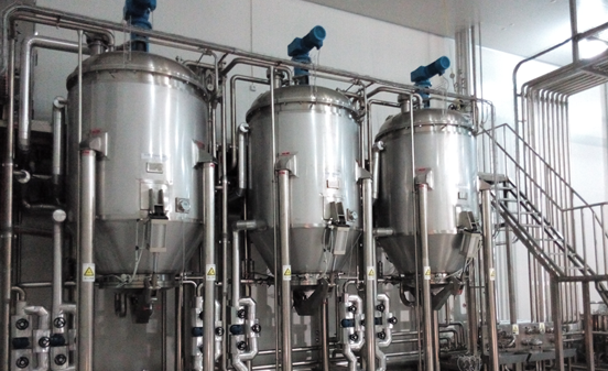 Transporte de polvo de azúcar, disolución de polvo de azúcar, esterilización de jarabe, filtrado y enfriamiento de jarabe, almacenamiento de jarabe y otras unidades. En caso especial, también se necesita realizar la desgasificación del jarabe. El proceso típico de disolución de azúcar en calor es de 85ºC, 10min, y luego se realiza el enfriamiento segmentado hasta la temperatura de uso (por debajo de 40ºC).